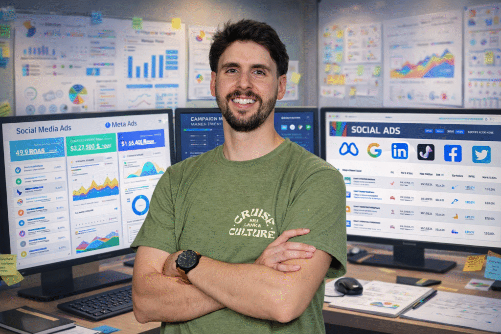 A sessão é conduzida pelo Manuel, especialista em Meta Ads, que trabalha diariamente com campanhas, públicos e resultados.